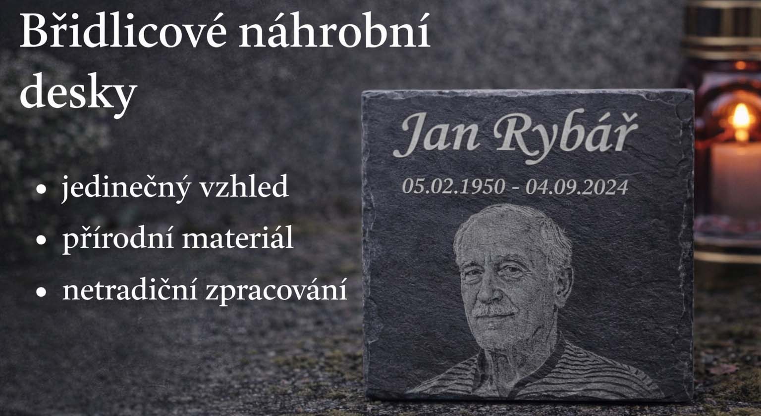 Důstojná vzpomínková deska z břidlice s jemným gravírováním o rozměru...