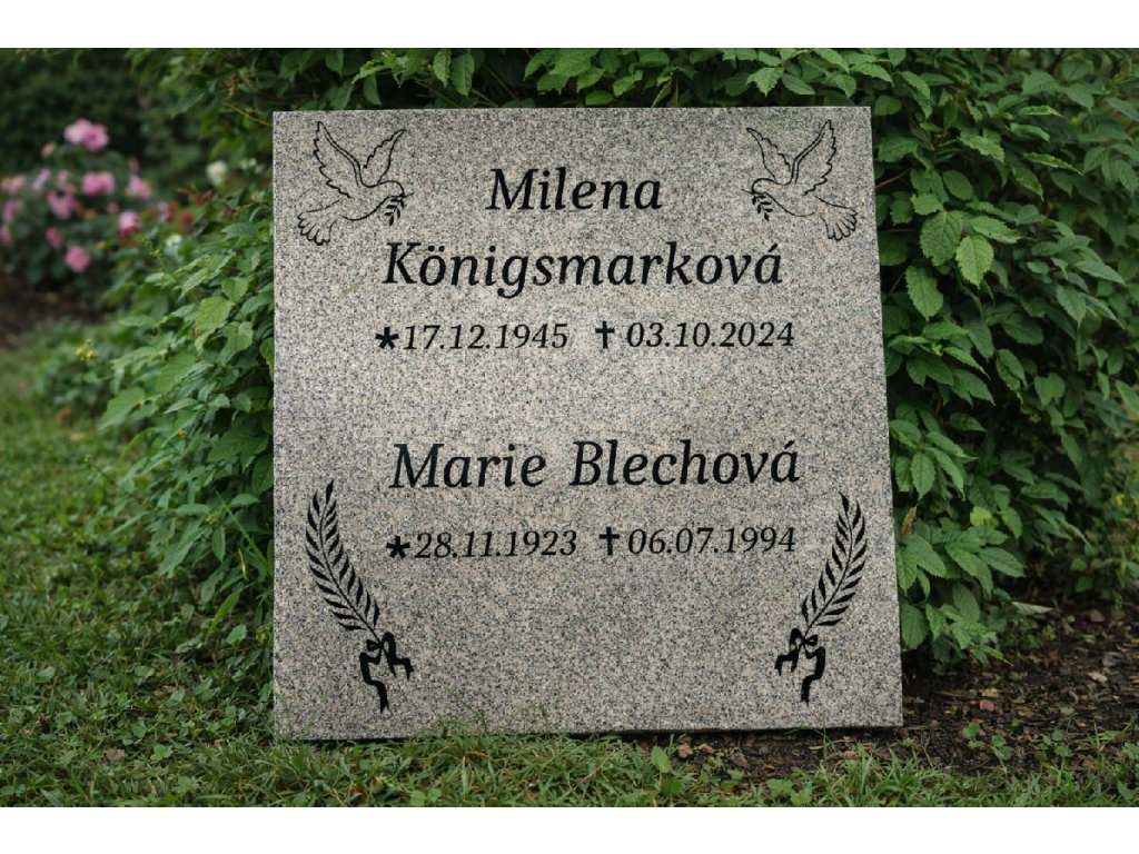 Využíváme moderní technologie, která umožňuje nejen gravírovat tradiční nápisy, ale také přenášet fotografie přímo na povrch desky. Díky tomu můžete vyjádřit svou lásku a respekt ke svému zesnulému miláčkovi nebo blízkému člověku prostřednictvím jedinečného grafického designu. Výroba náhrobních desek ze slinuté keramické dlažby k označení hrobu. Slinutá dlažba má probarvené i okraje a je tak stylovou a pevnou náhradou skla nebo drahého kamene.