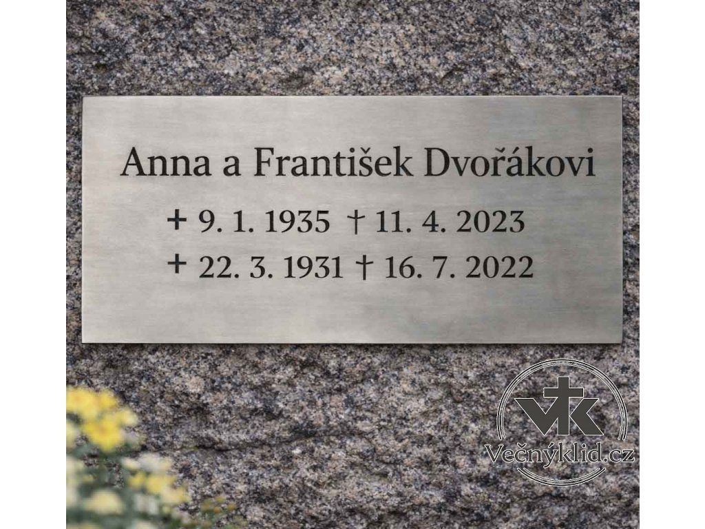 Nerezová pamětní deska na míru, která spojuje vysokou odolnost s citlivým ztvárněním vzpomínky. Precizní laserové gravírování je trvale spojeno s materiálem, takže se neloupe ani nebledne. Deska je vhodná pro venkovní použití a odolá dešti, mrazu i slunci.