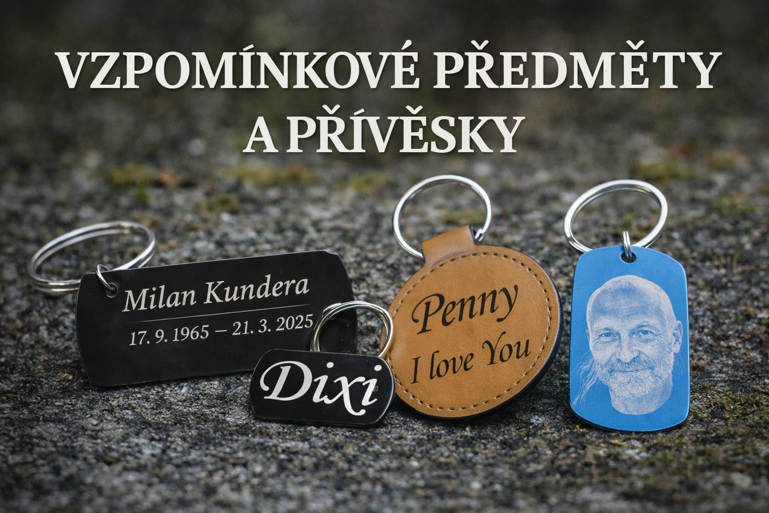 omínka kterou máte nejen v srdci téměř pořád u sebe. Originální přívěsky se jmény, QR kódy - například na virtuální pomník, nebo gravírovanou fotkou Vašich milovaných. Na klíče, do auta na zrcátko, na mobil - Vaši vzpomínku můžete mít na několika místech.