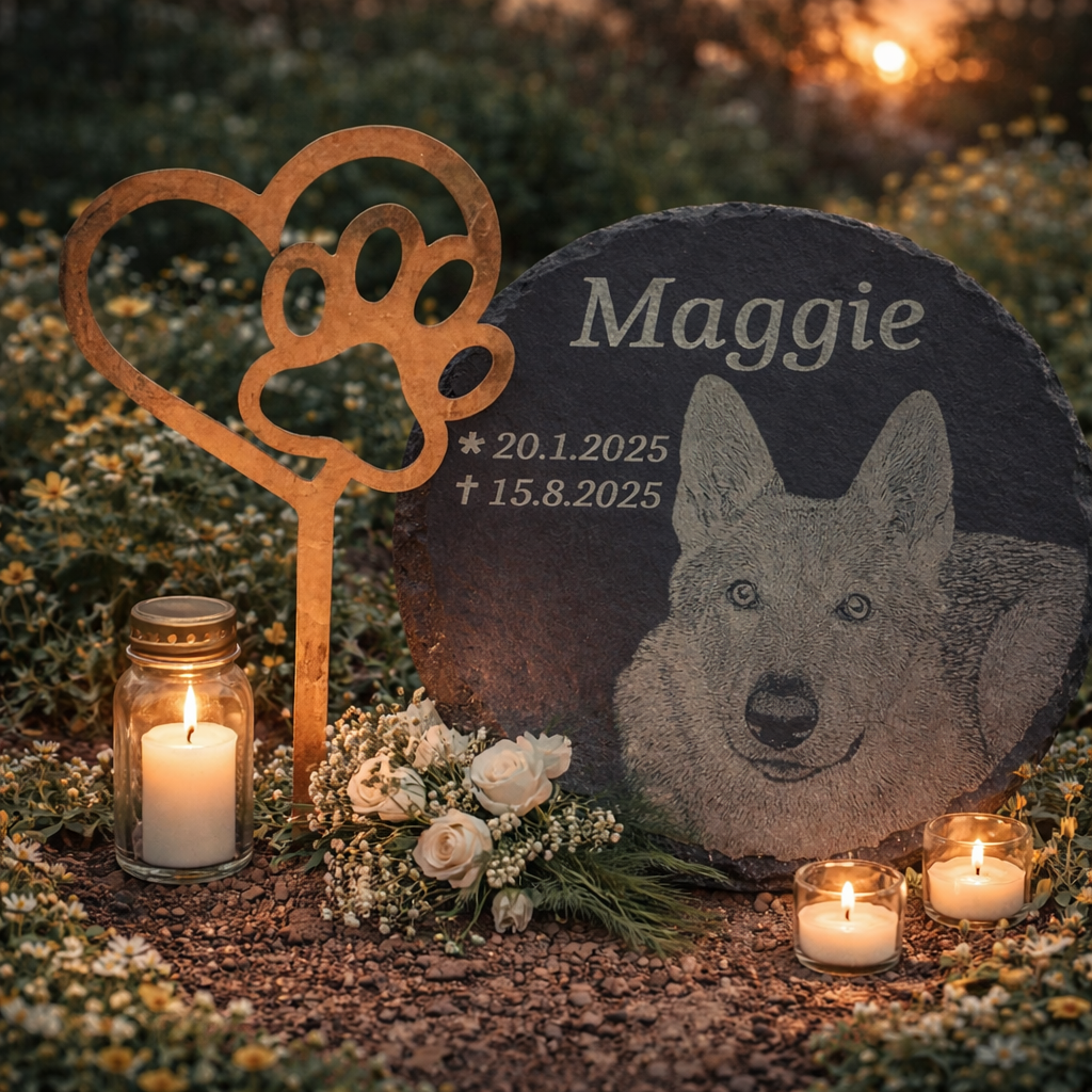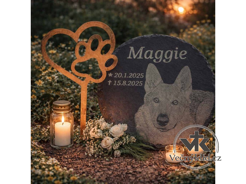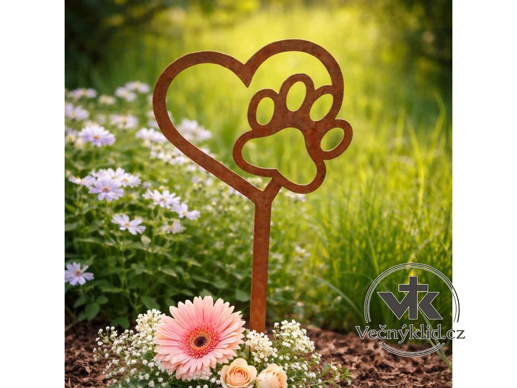 Zápich vyrobený z plechu s přirozenou patinou krásně zapadne do zátiší pietního místa, svým vzhledem nebude rušit a decentně doplní pamětní desku.