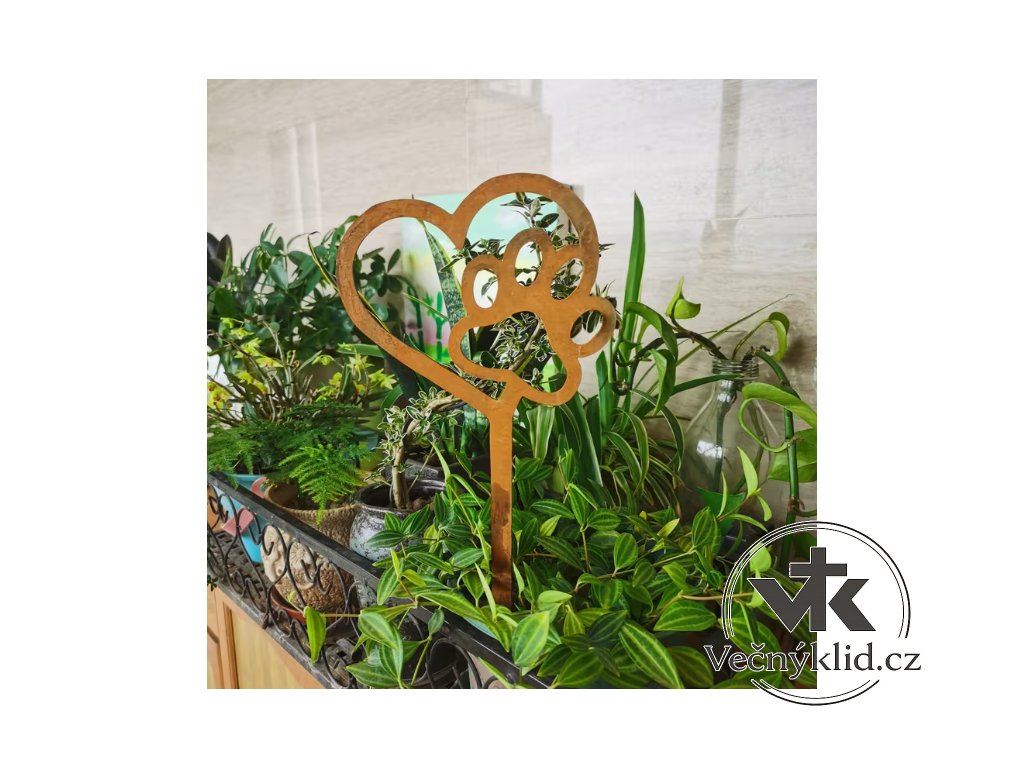 Jedná se o netradiční zápich z plechu o síle cca 1mm s přirozenou patinou - plech není nijak ošetřen a tak dochází k přirozené oxidaci - korozi, tím vzniká přirozený a jedinečný vzhled, který patří k přírodě.